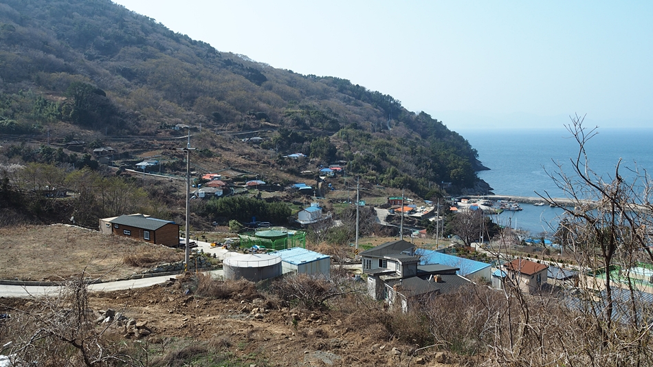 남구선착장에서 내려 도로를 따라 동쪽으로 걸어가면서 내려다 본 남구마을.