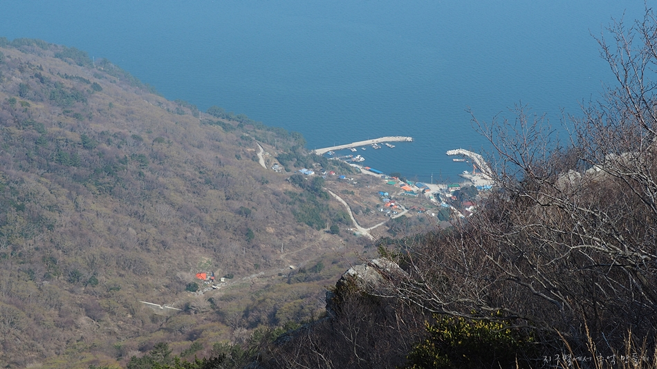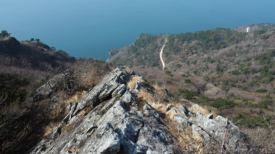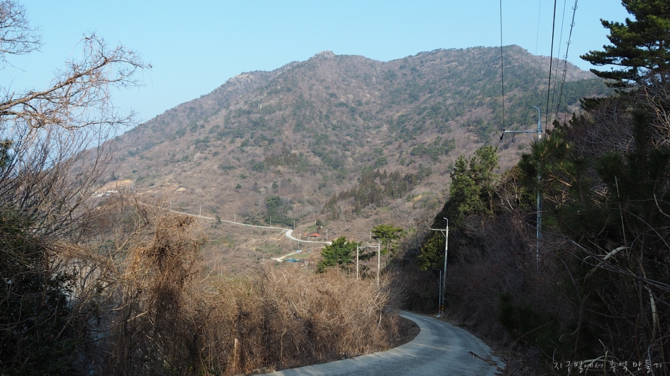 천황산 정상이 올려다 보이고 아래로는 남쪽해안도로가 보입니다.