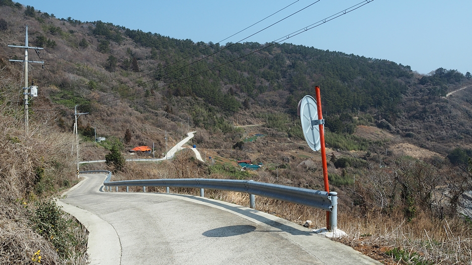 일주도로는 일차선 도로에다 위험지역이 많아 간간 볼록거울이 세워져 있네요.