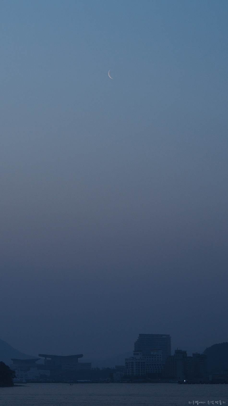 배에 오르니 아직 일출은 이르고 하늘에는 눈썹달이 떠 있네요.