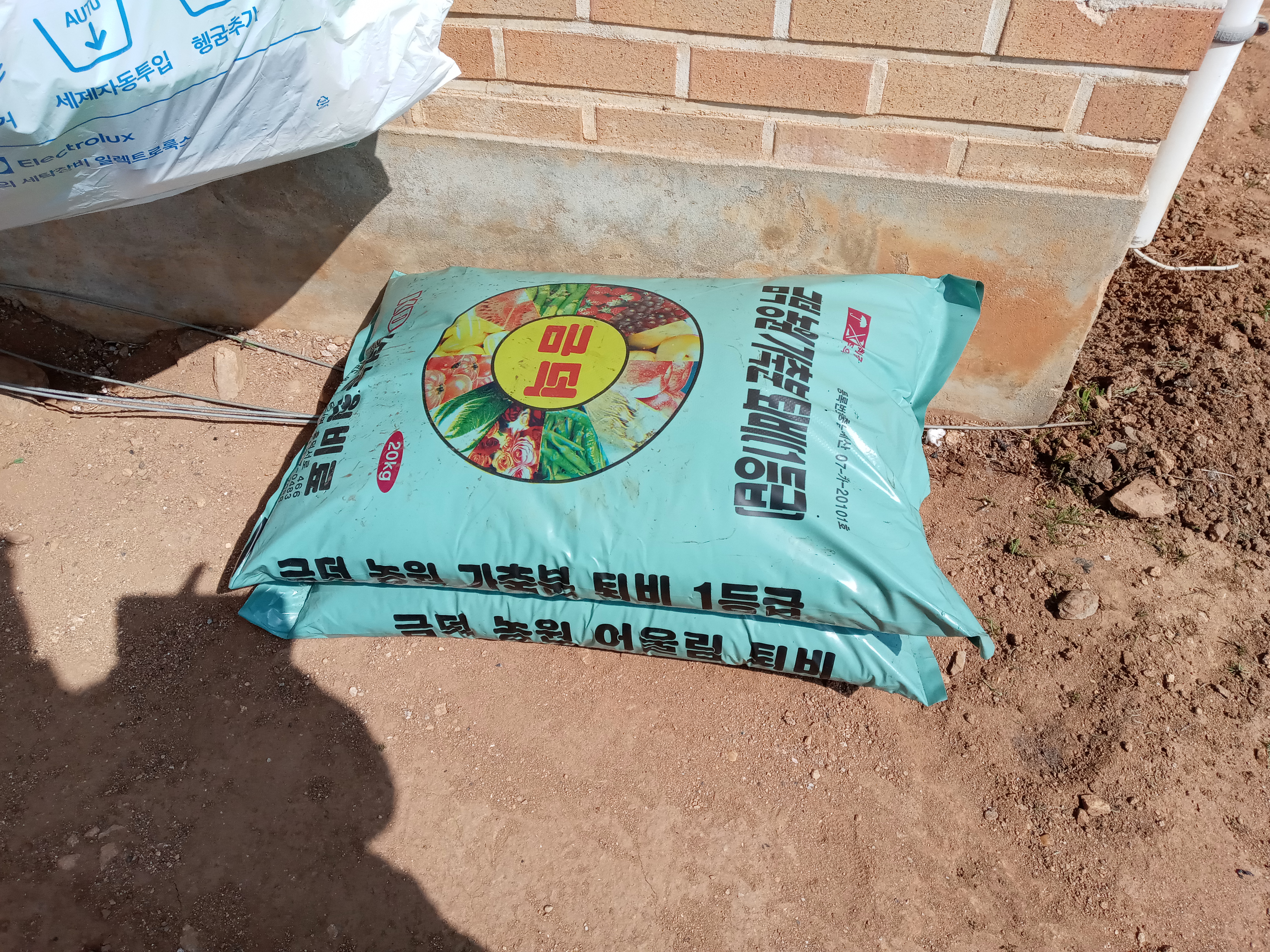 장터에서 오는 길에 계분 퇴비를 10 포대 구입을 했습니다.