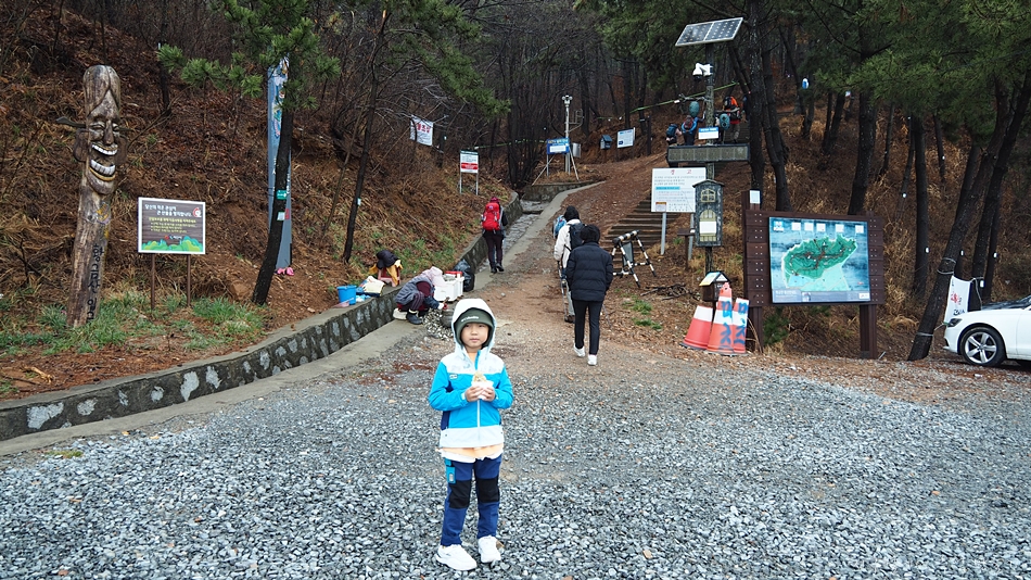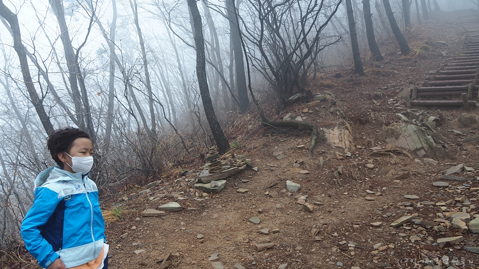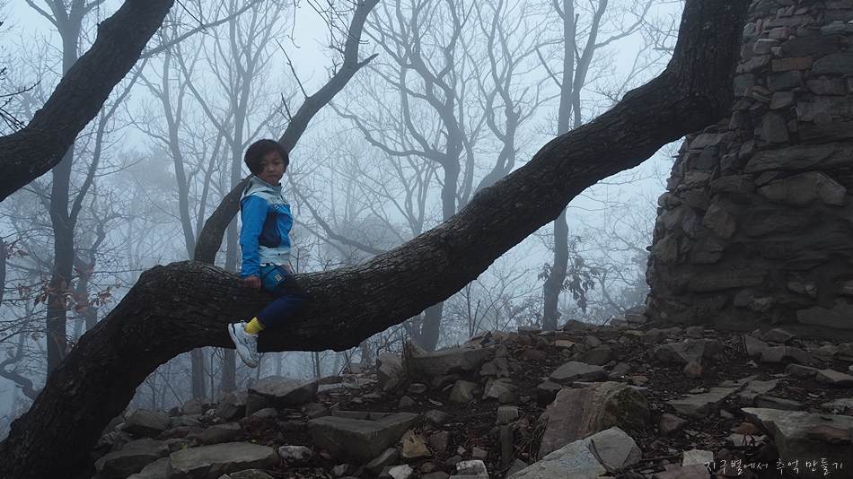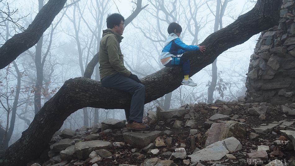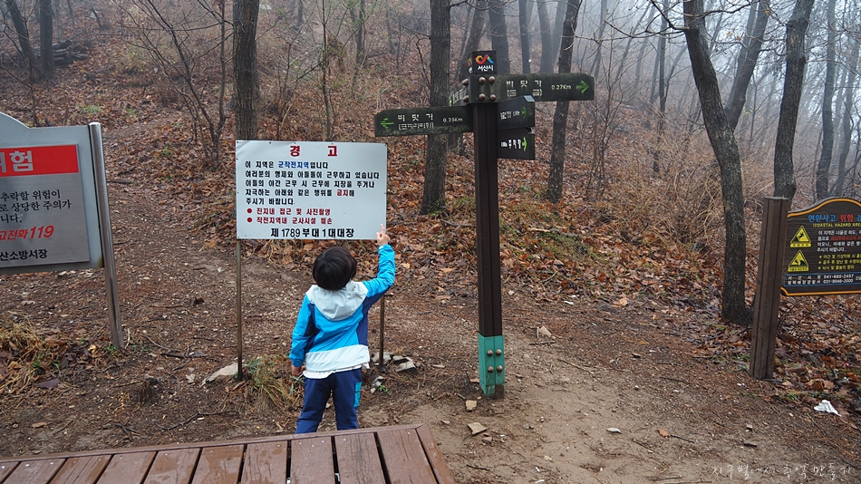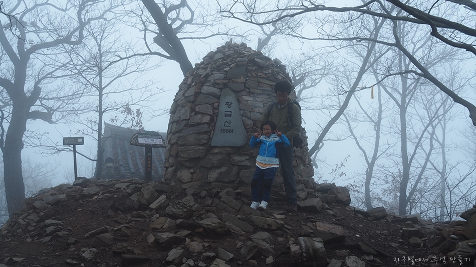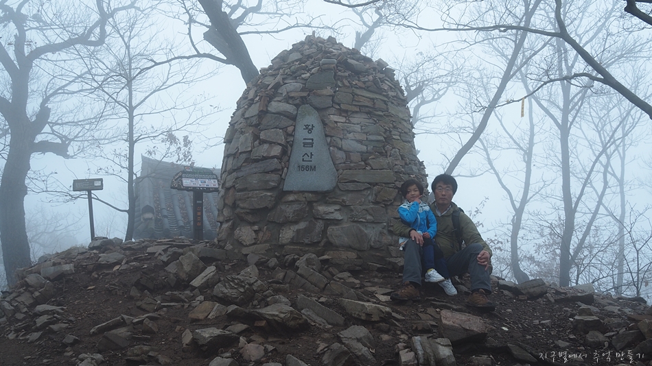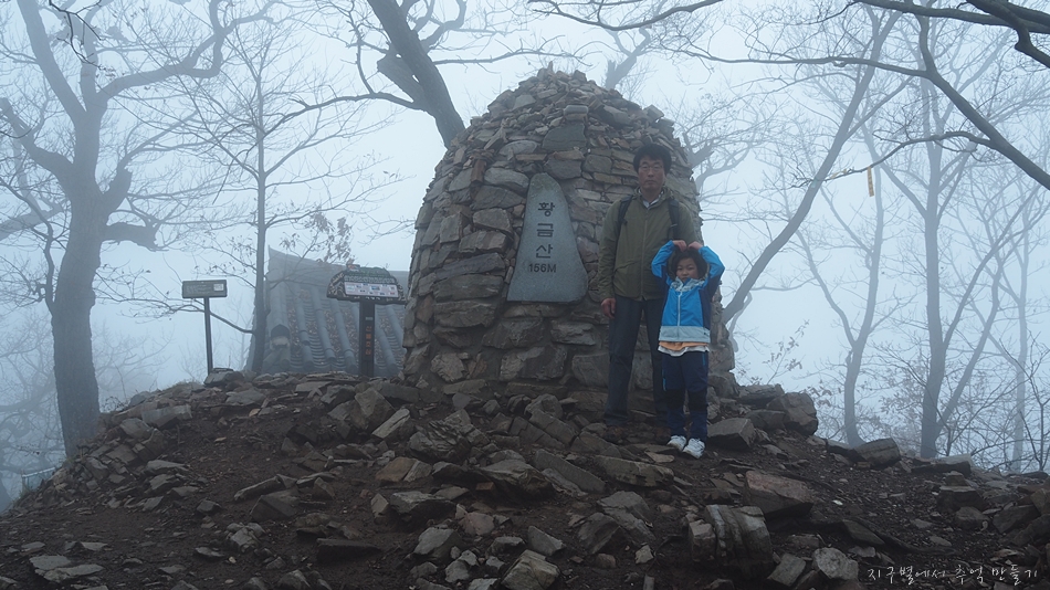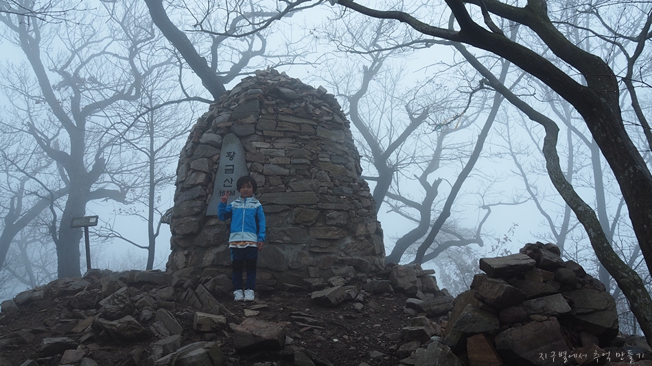 황금산 도착하기 전까지 가늘게 비도 내렸고 안개에다가 바람까지 쌀쌀하게 불어서 7세 산악인 지율군을 데리고 먼길 달려왔는데 아쉬움 가득..