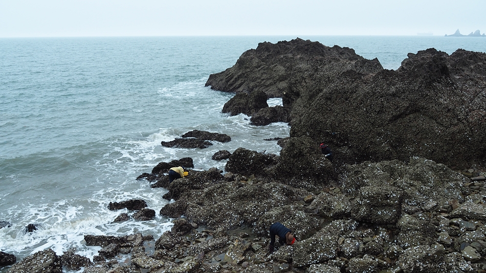 조금 당겨서 보니 굴 아니면 조개를 채취하고 있는듯 합니다.