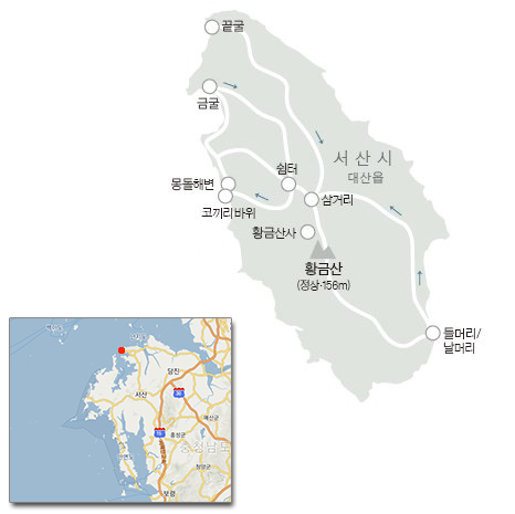산행 코스 : 황금산 주차장 - 코끼리바위 - 해안트레킹 - 황금산 정상 - 주차장(산행후 1시간 거리에 있는 개심사 탐방)
