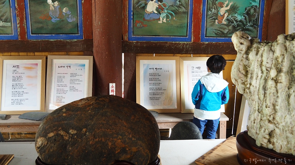 돌멩이에는 관심이 없고 같이 전시되고 있는 시화 해독하는데 열중인 7살...