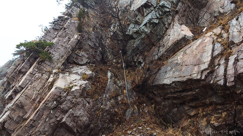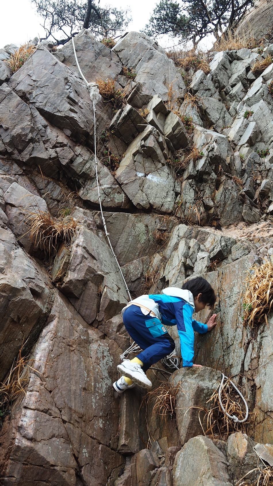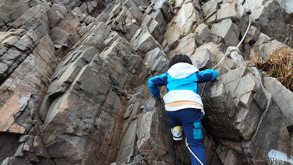 앞쪽 절벽위로 로프가 걸려있고 위로 올라가는 길이 있는듯하여 아이를 데리고 약간 모험을 하여 봅니다.