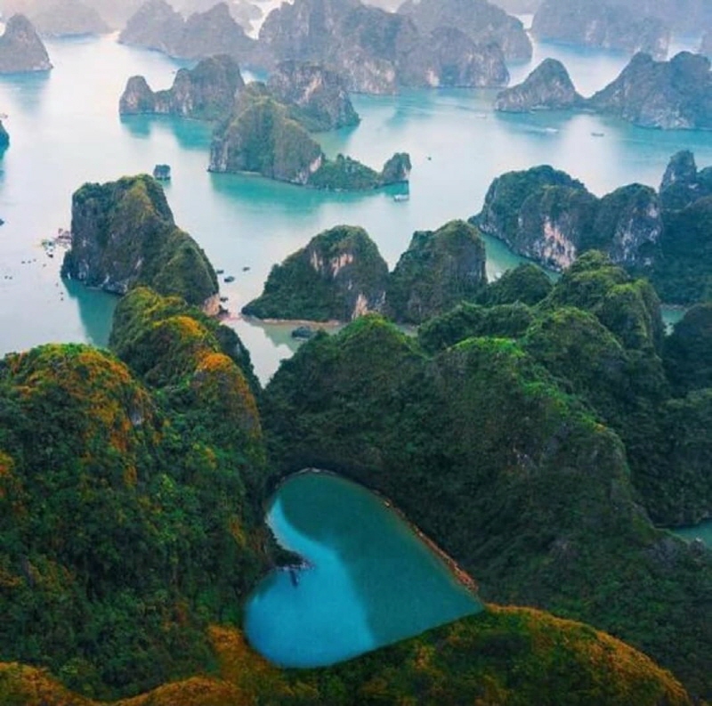 13. 걸프만의 에메랄드 빛 바다에서 우뚝 솟은 석회암 기둥과 숲이 있는 작은 섬