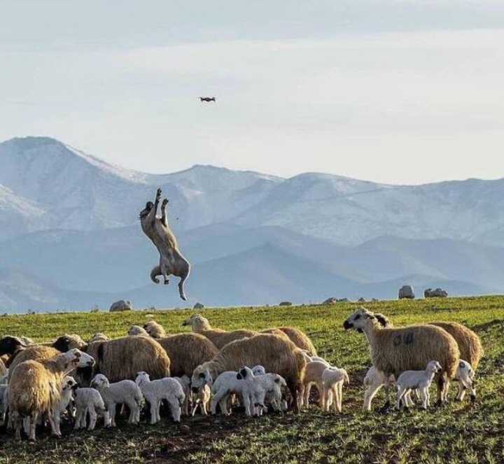 10. 드론을 외부의 적으로 간주하여 무리를 보호하려는 셰퍼드 개.
