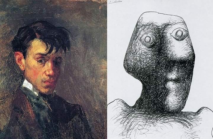 20. 파블로 피카소의 첫 자화상(1896)과 마지막(1972) 자화상.