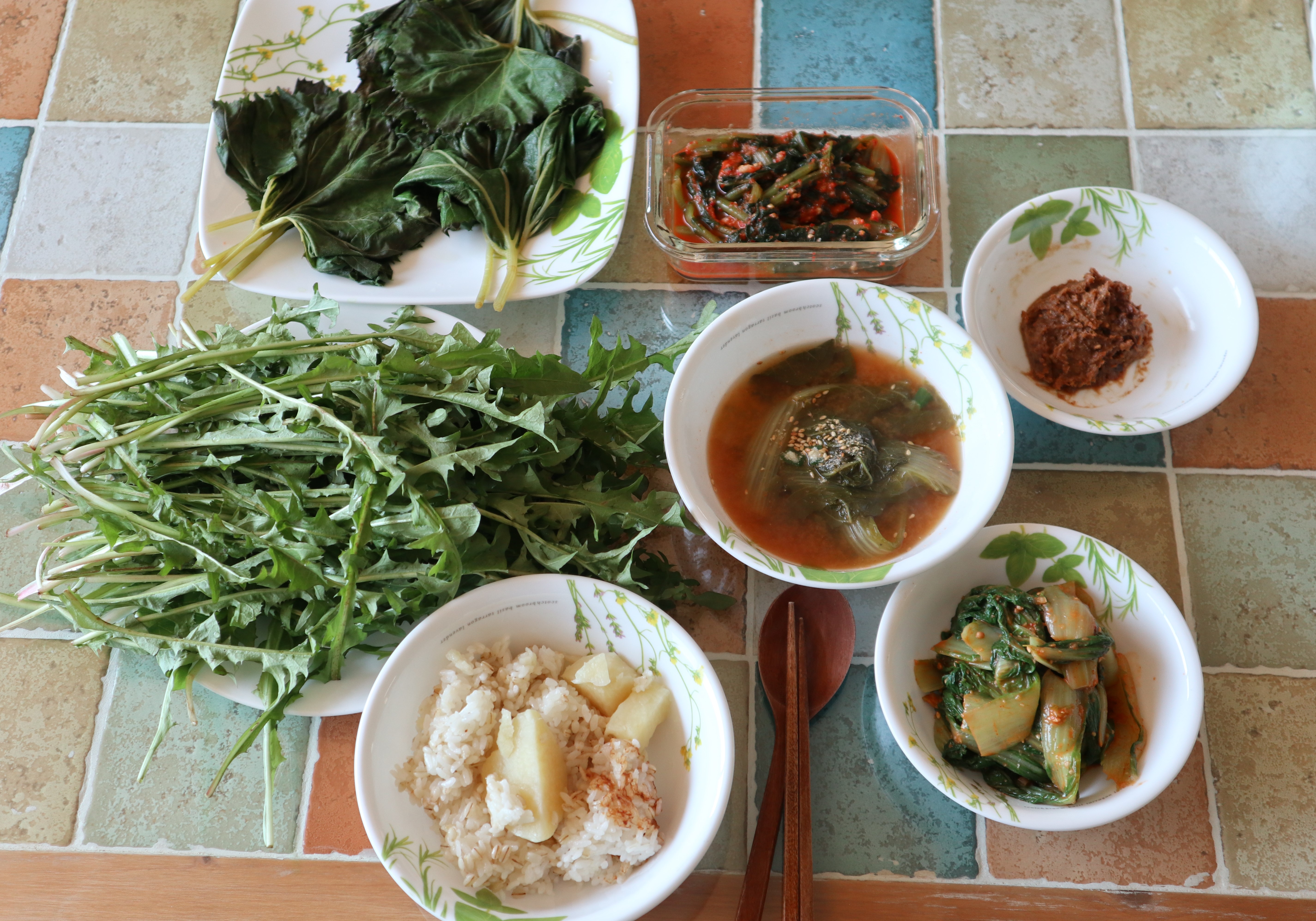 머위 민들레 얼갈이배추 무침 얼갈이배추 국 열무김치...