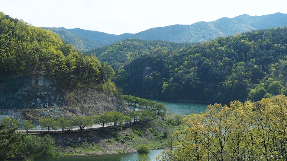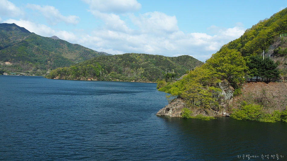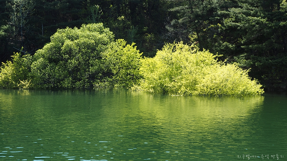 호수의 물 빛깔과 산빛이 너무 잘 어울리고 멋집니다.