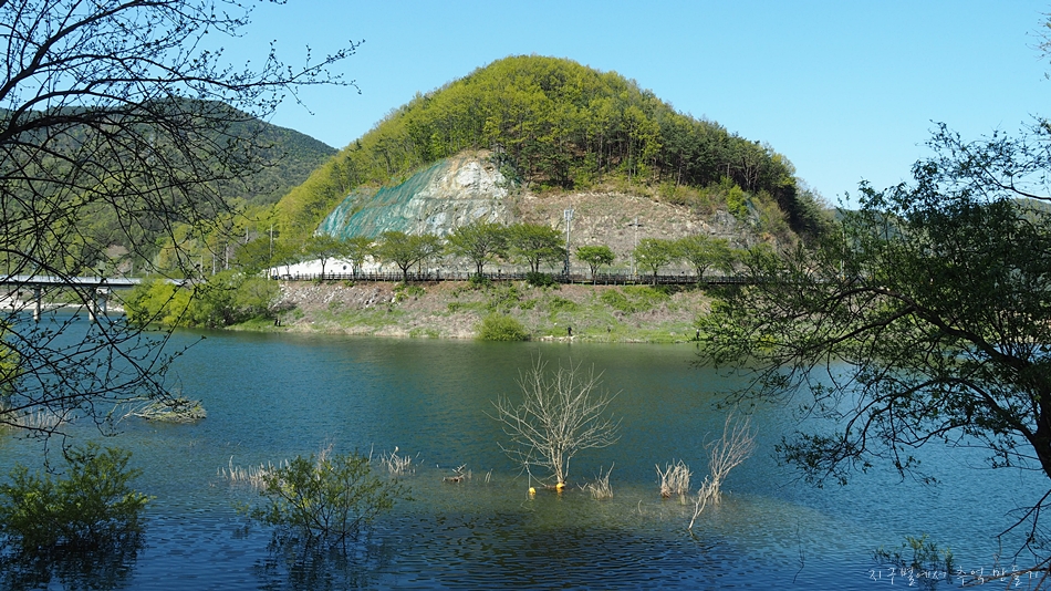 올라가면서 내려다 본 성주호 상류 부근