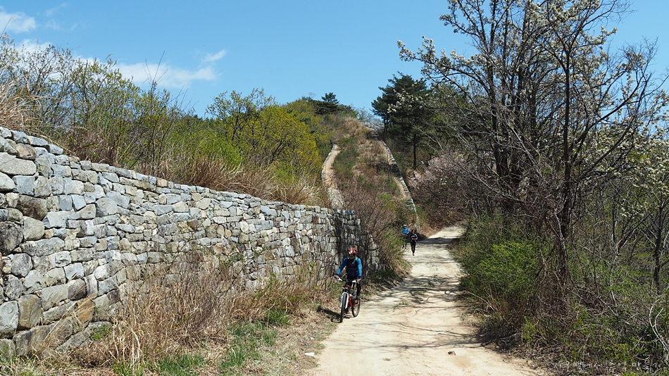 성곽은 양쪽으로 돌을 쌓아서 그 사이를 흙으로 메꿨는데 폭이 요즘으로 치면 왕복 2차선 정도는 됩니다.