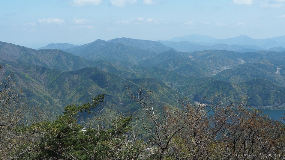 가야산에서 수도산으로 이어지는 능선길이 한눈에 보여지지만 아쉽게도 잡목으로 가려져 있습니다.
