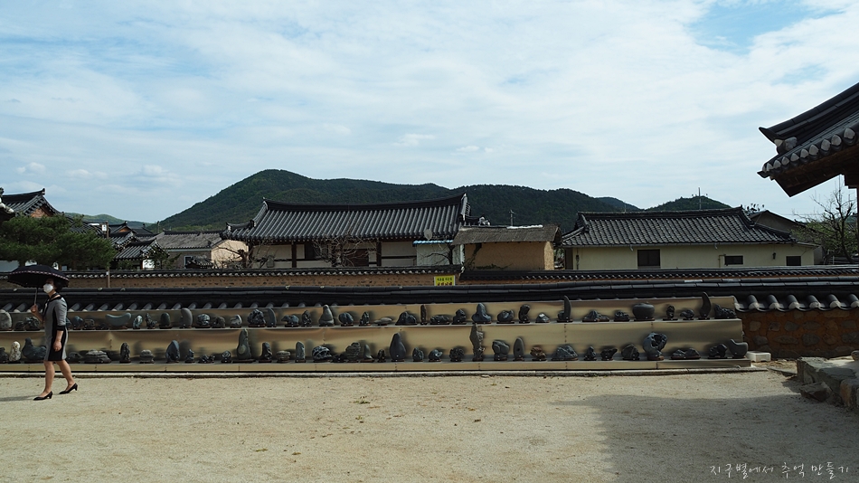 만취당 들어가는 앞마당에는 이처럼 담벼락 아래 엄청난 수석들이 진열되어 있는데 멋진 작품들도 많습니다.