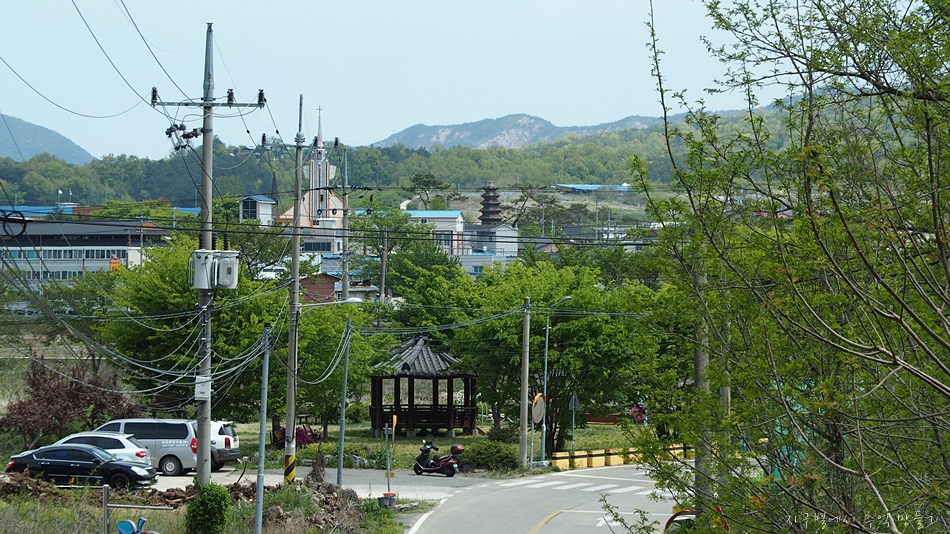 탑리로 넘어가는 고개에서 바라 본 오층석탑입니다.