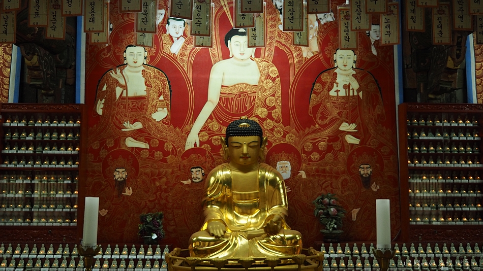 좌우 협시보살로 앉아 계신 갈라보살과 미륵보살도 비슷한 인상인데 절을 하면서도 조심스럽네유..