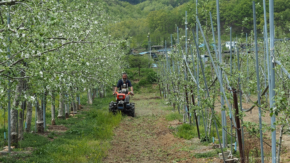 오늘 경운기 한대 뽑았다면서 과수원 시범갈이 중.