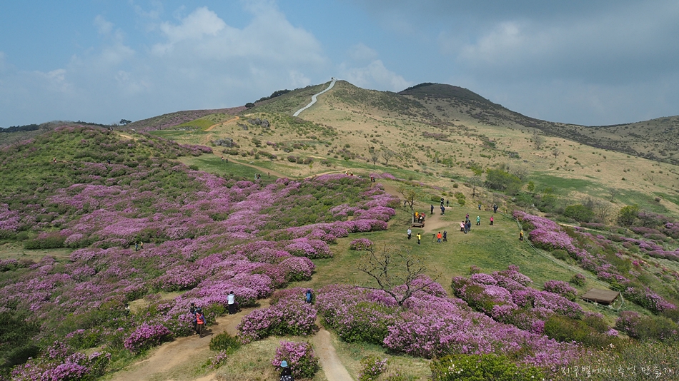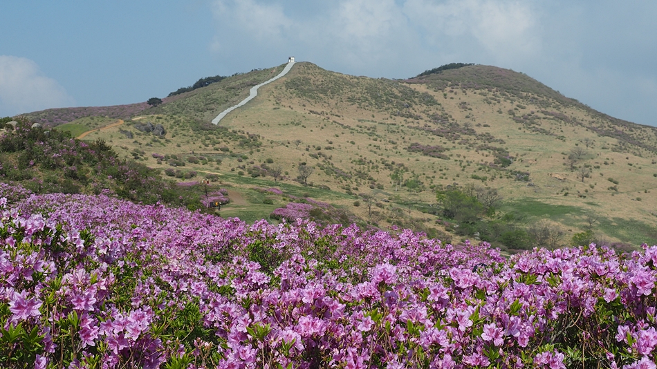 지금 철쭉 꽃밭은 옛날 소 목장이었는데 이넘의 소들이 먹지 못하는 개꽃(철쭉)만 남기고 모조리 뜯어 먹어 치우는 바람에 남겨진 철쭉이 멋진 꽃밭이 된 곳입니다.