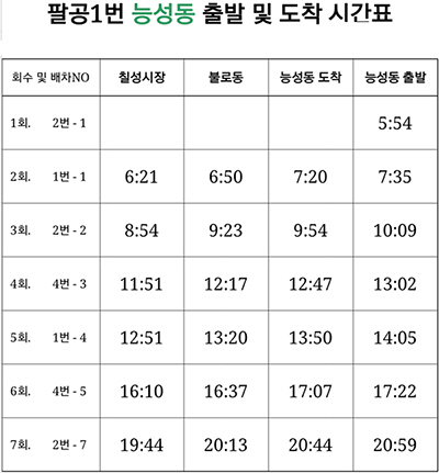 능성동(능성재) 버스주차장에서 버스가 언제오나하며 기다리고 있는데 옆에 앉아 같이 기다리던 어르신께서 지갑에서 코팅된 버스시간표를 하나 건네 주시네요.