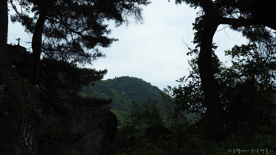동네를 내려오는 길목에서 뒤돌아 본 명마산.