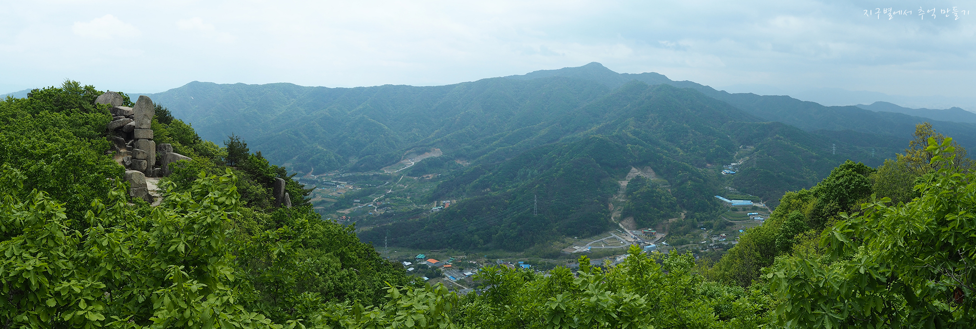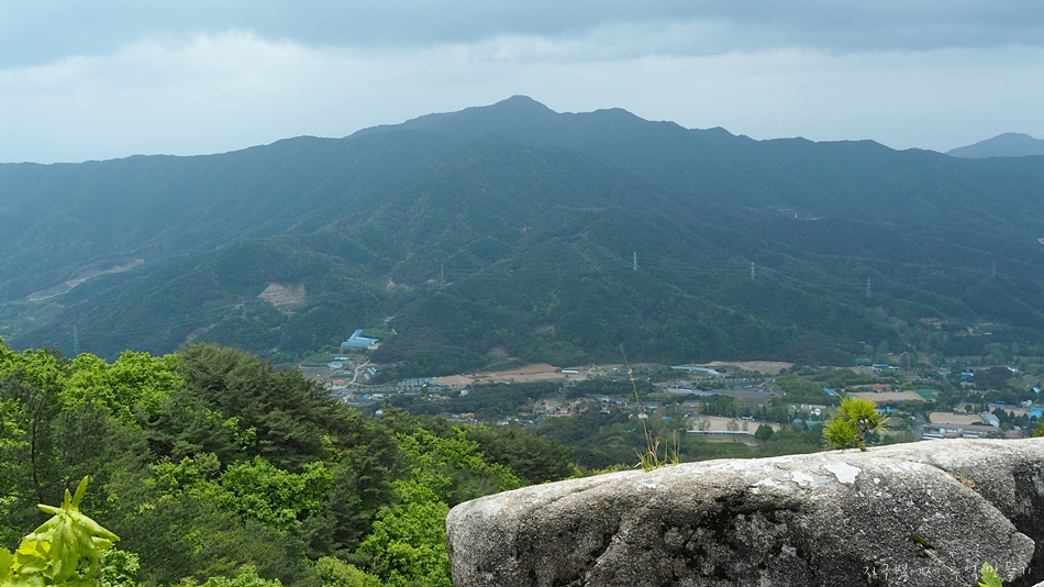 좌측 장군바위와 우측 뒷편으로 환성산.