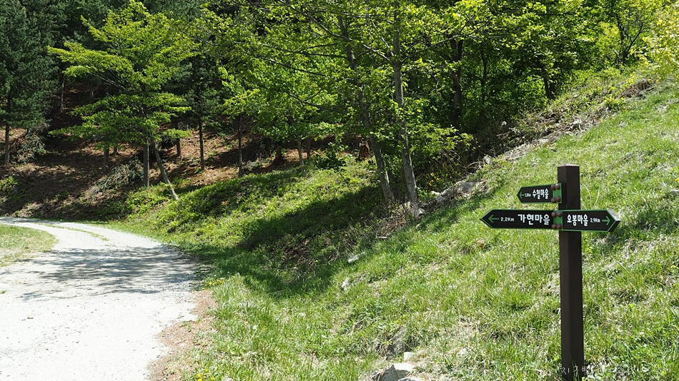 방곡마을에서 오봉마을로 올라가서 구경하고 내려 온 다음 가현마을에서 임도를 타고 고동재를 넘어 수철마을로 내려 왔습니다. 가현마을에서 수철마을까지는 임도길만 5km가 넘습니다.