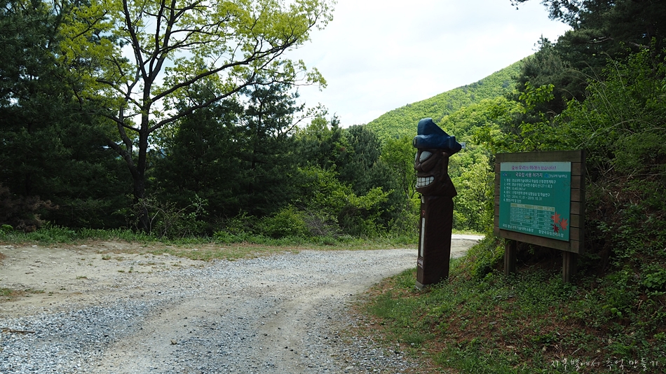 중간에 오봉마을에서 올라오는 임도와 만나게 됩니다.
