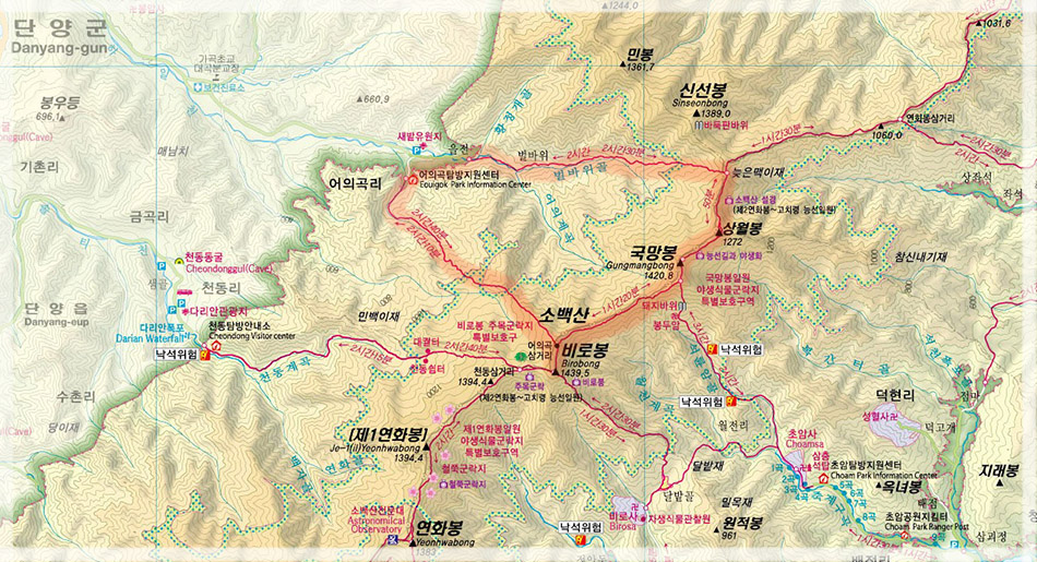 원점회귀가 가능한 환주코스로 영주의 비로사와 초암사 기점이 있고 단양의 어의곡 기점이 있답니다.