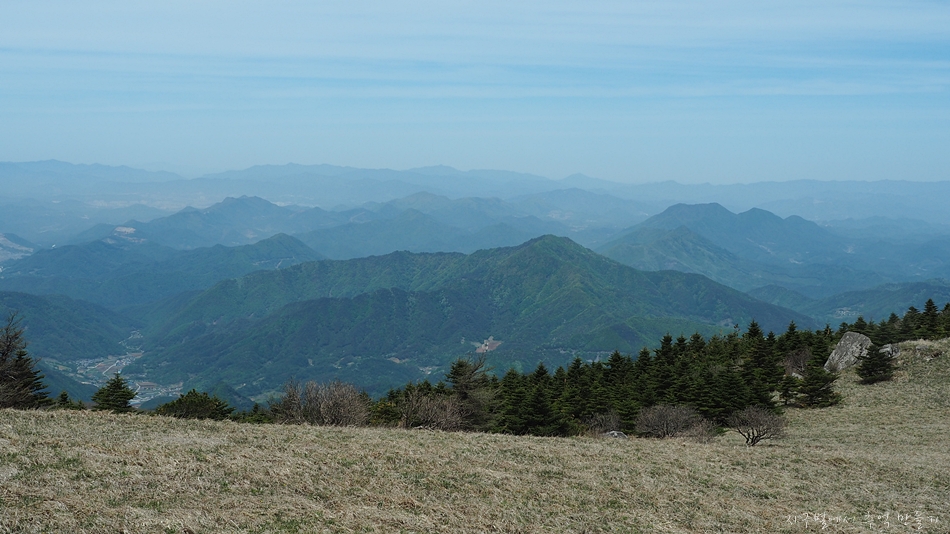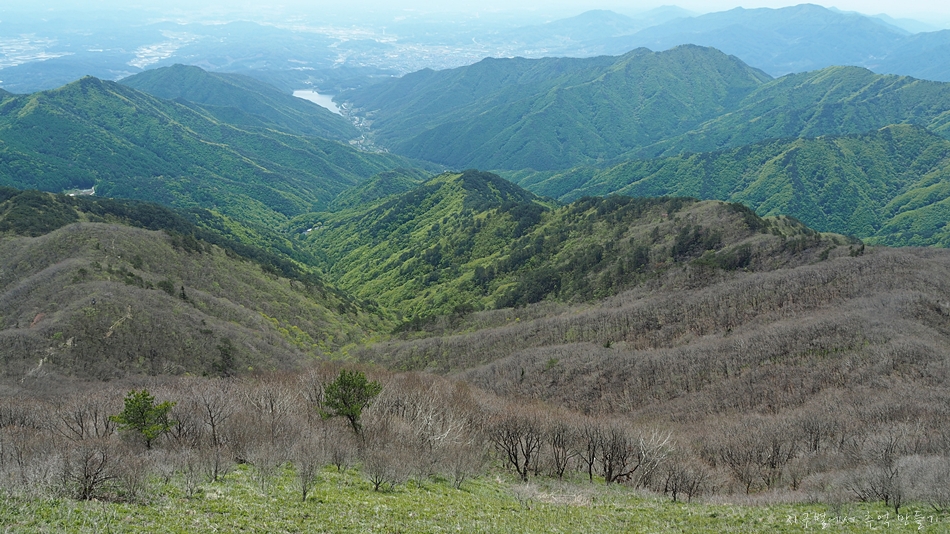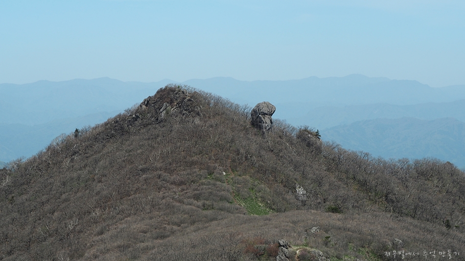 정상쪽에서 뒤돌아 본 풍경.