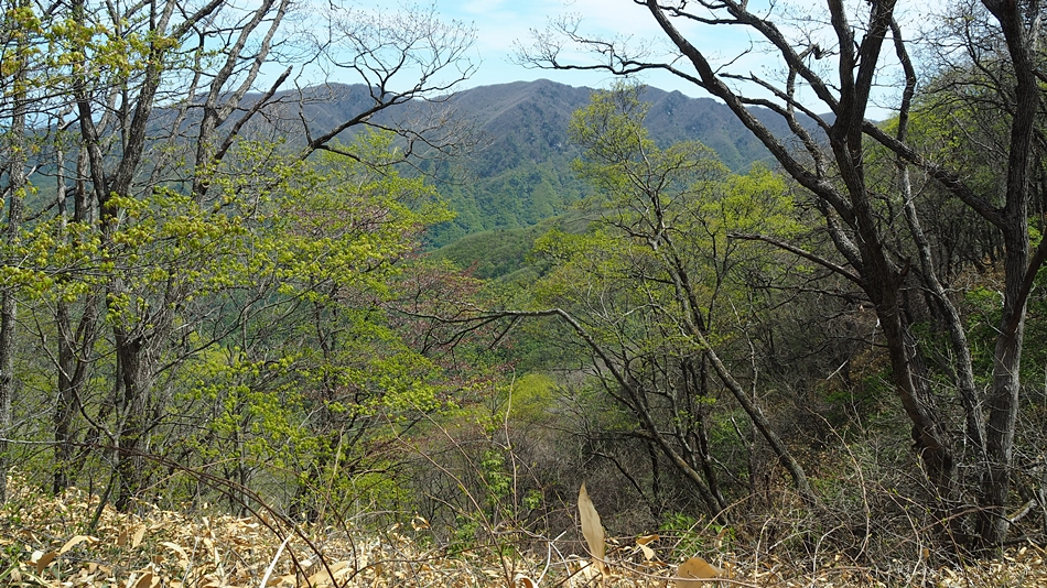 1시간 이상 오르면 주능선이 숲 사이로 보입니다.