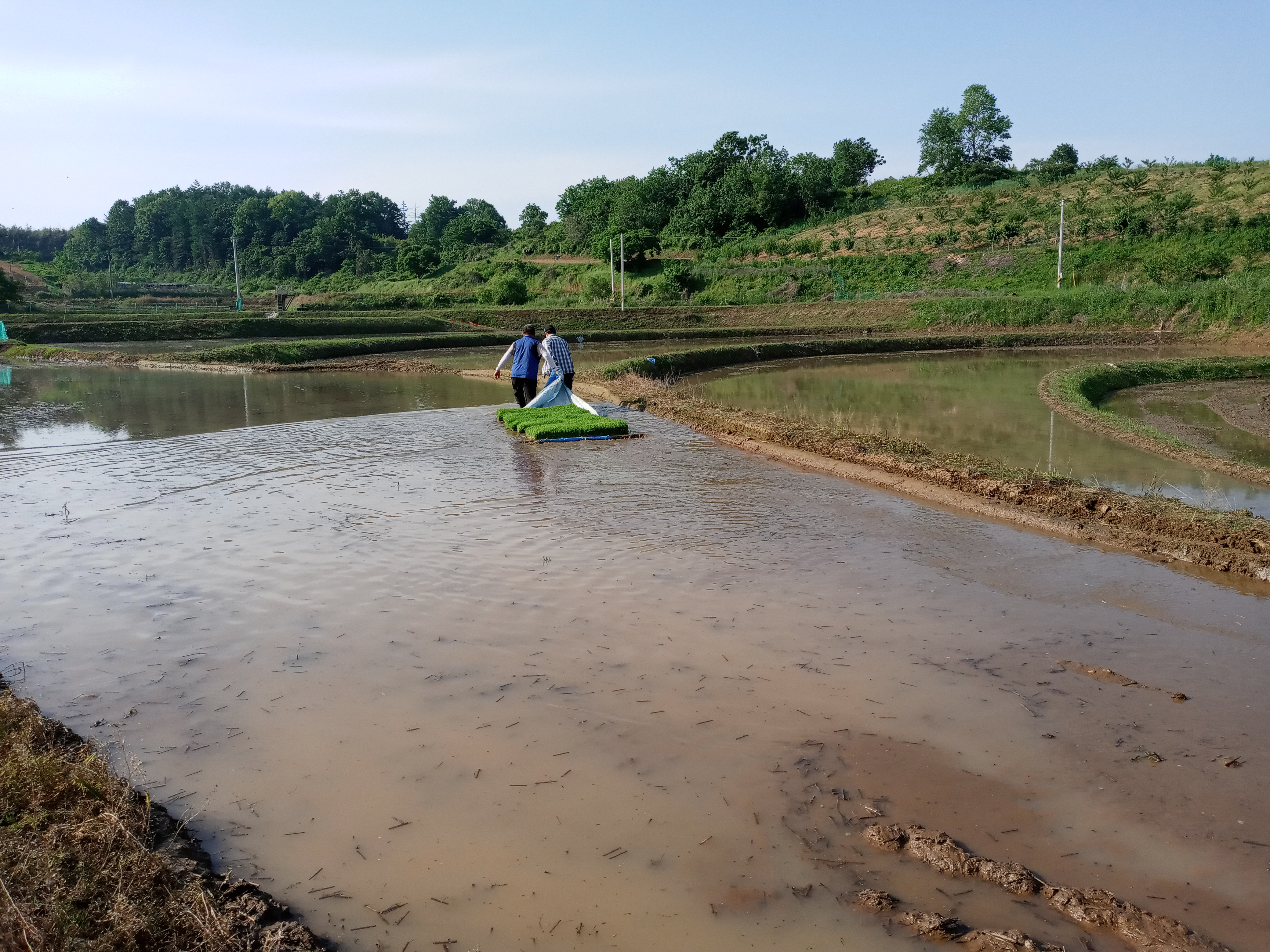 모를 싣고 천천히 운전을 해서 논에 도착을 하니.. 군 복무 시절 모내기 대민봉사를 한 추억이 떠 오르더군요.