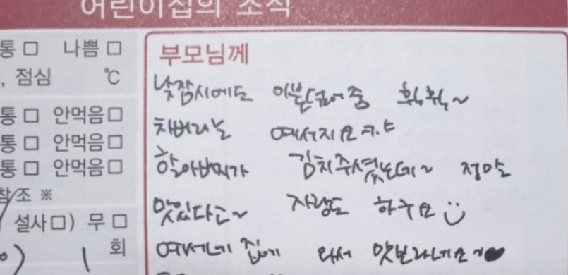 할아버지가 김치 주셨는데 정말 맛있다고 자랑을 하더랍니다.