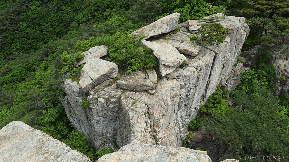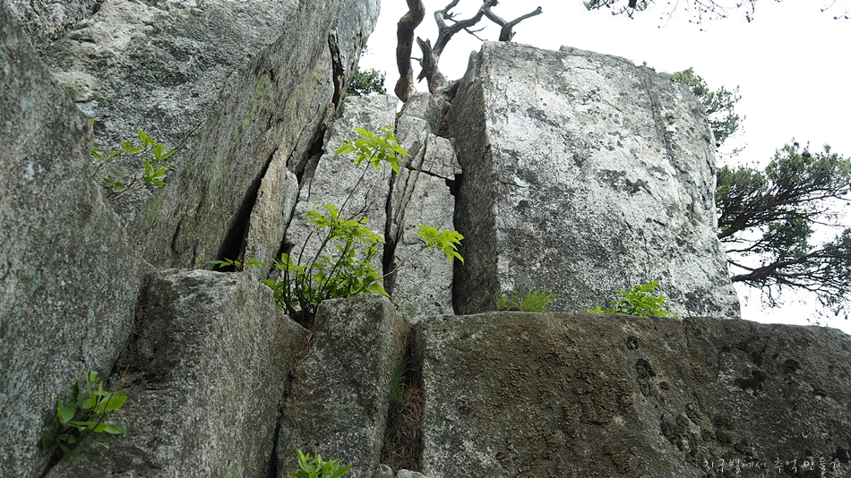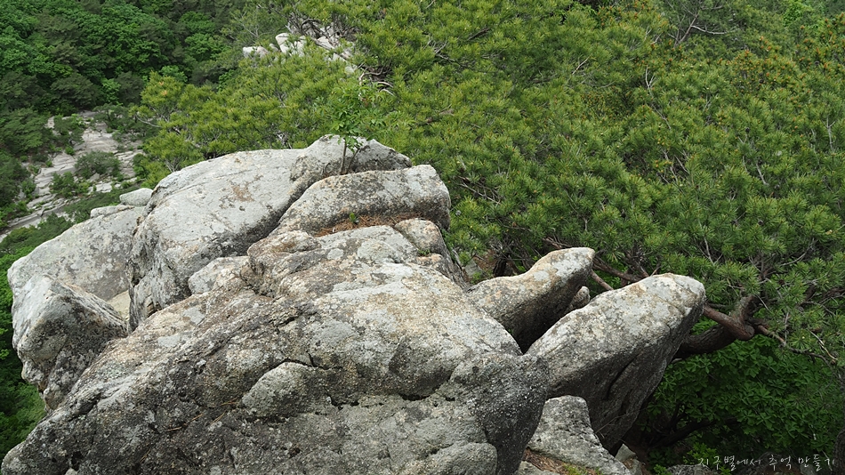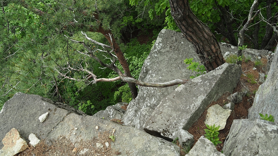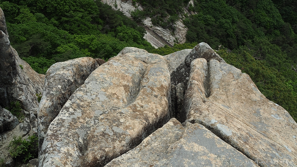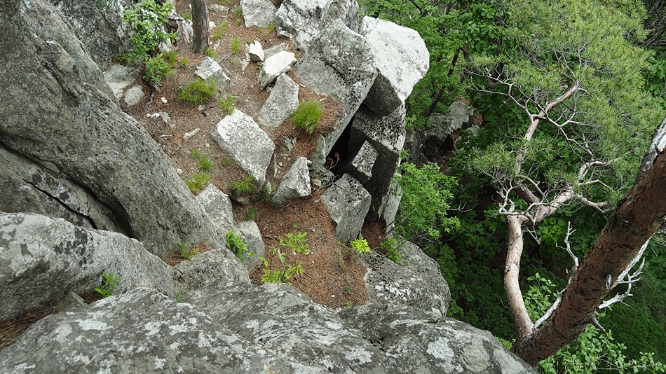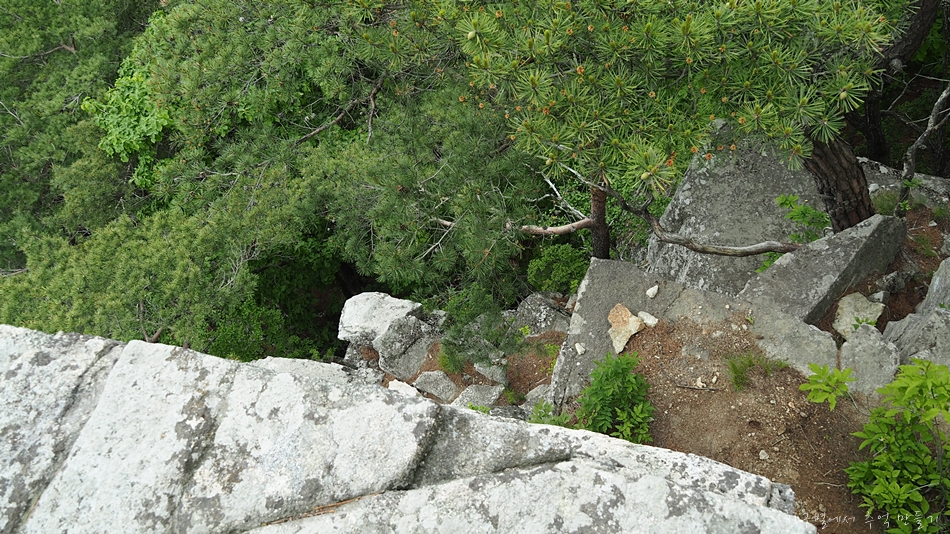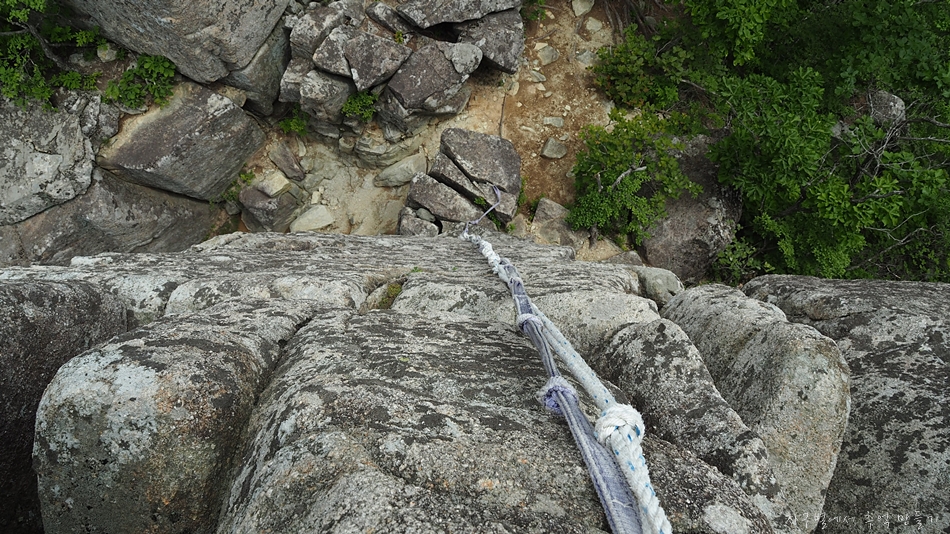 용바위 머리 부분인 장군봉에서 아래로 내려가는 구간은 10여m 직벽입니다.