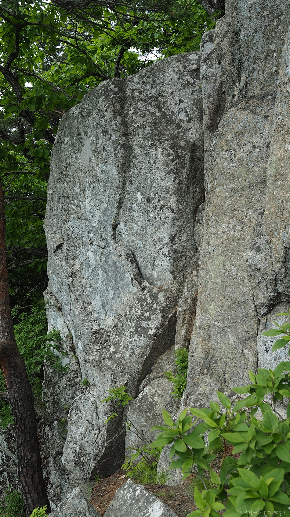 바위에 매달리고 기어 올라가면서 생긴 자국이라고는 차마 설명을 못하고..