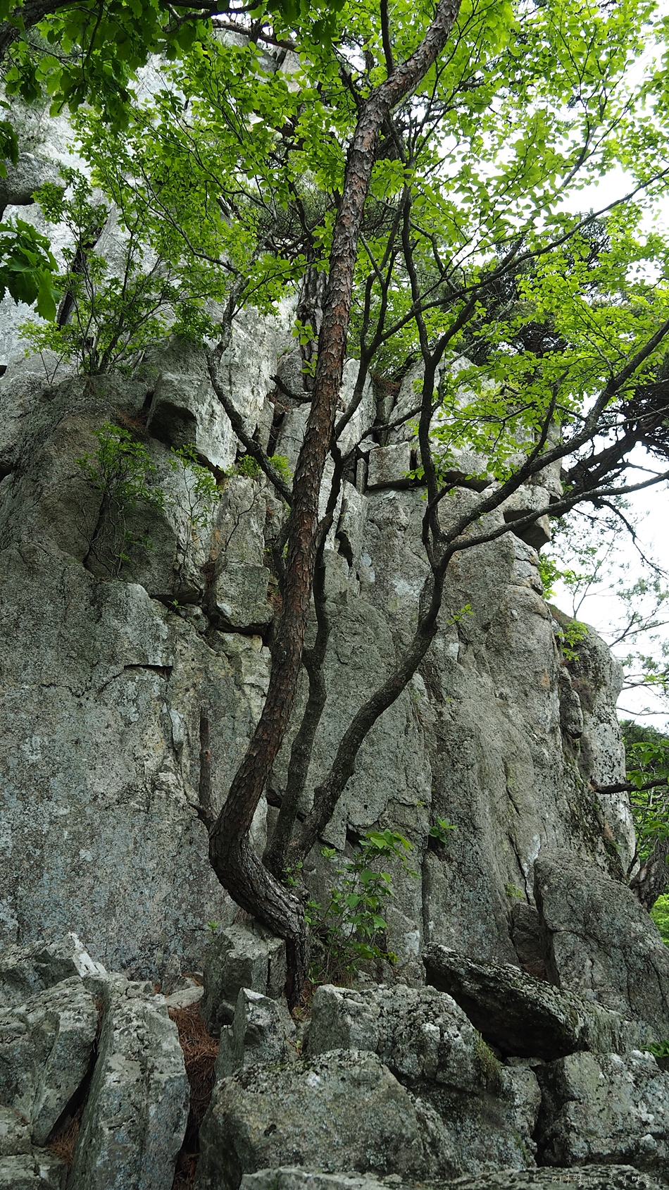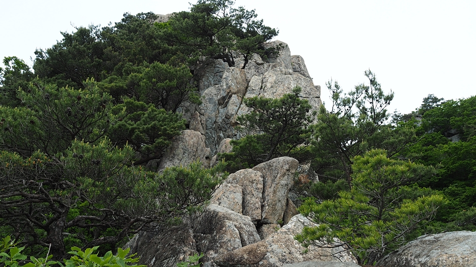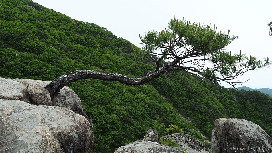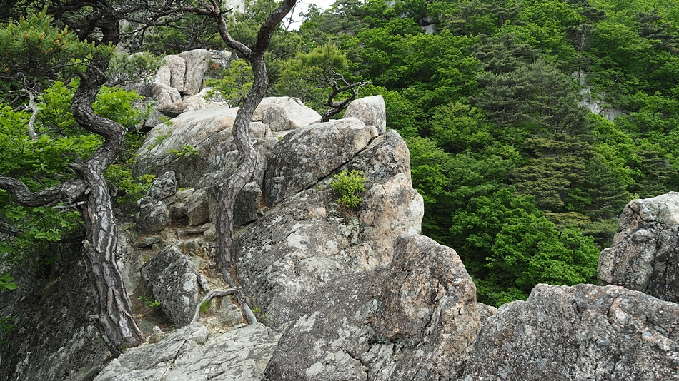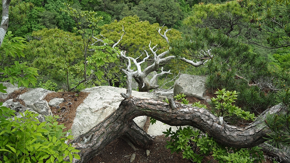 용바위에 용트림으로 자리 잡아 억세게 살고 있는 소나무들.