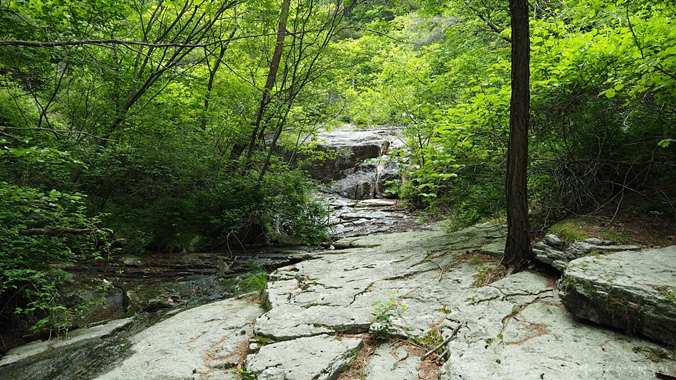 조그마한 와폭이 나오고 이곳에서 계곡을 왼편으로 건너 본격적인 산행이 시작 됩니다.