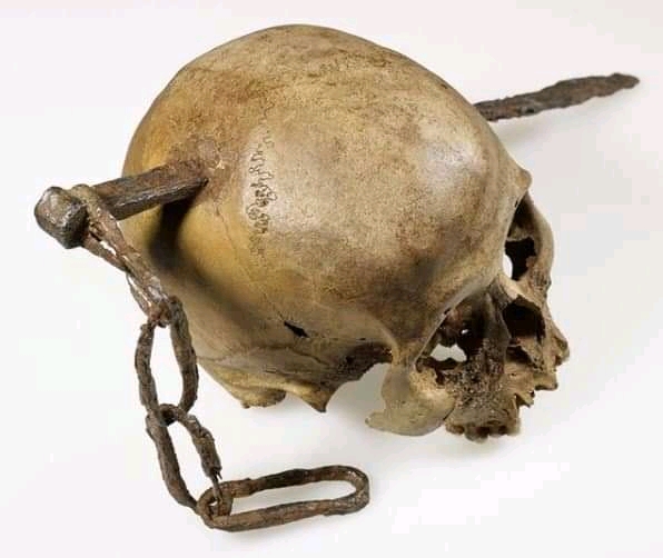 8. 흉기로 찔린채 발견된 로마시대의 두개골. 현재 독일 본에 있는 Rheinischen Landes 박물관에 전시되어 있습니다.