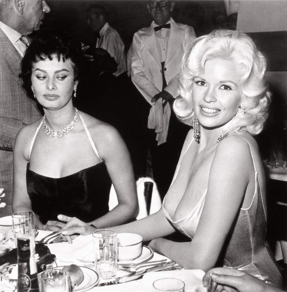 19. 1957년 파라마운트 파티에서 소피아 로렌은 제인 맨스필드의 예쁜 가슴을 조용히 훔쳐 봅니다.