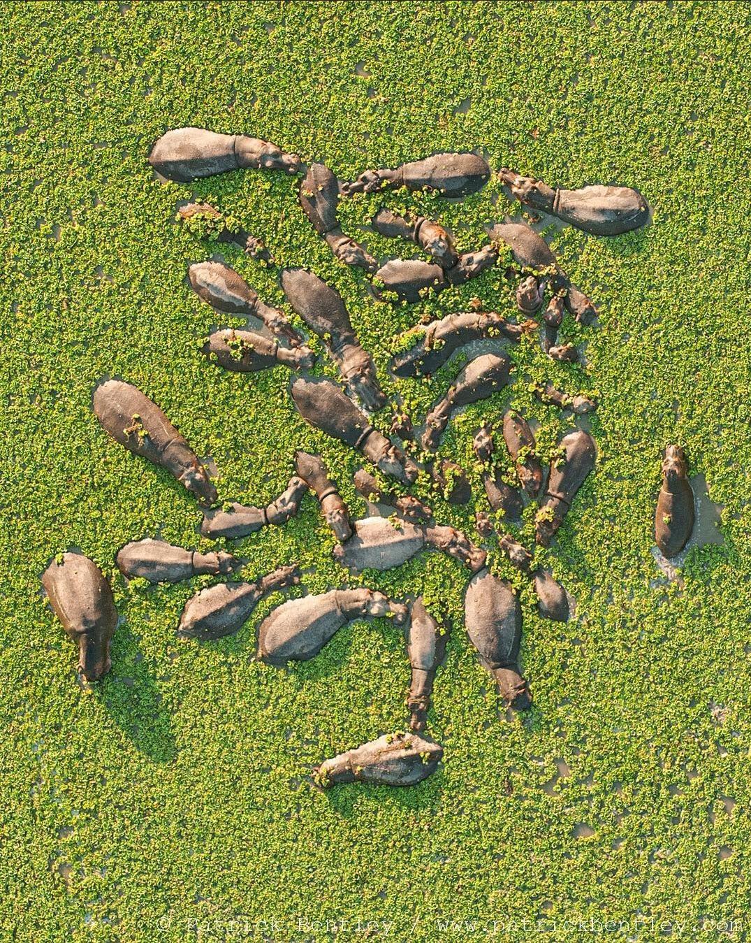 16. 잠비아의 석호에서 놀고 있는 하마떼.