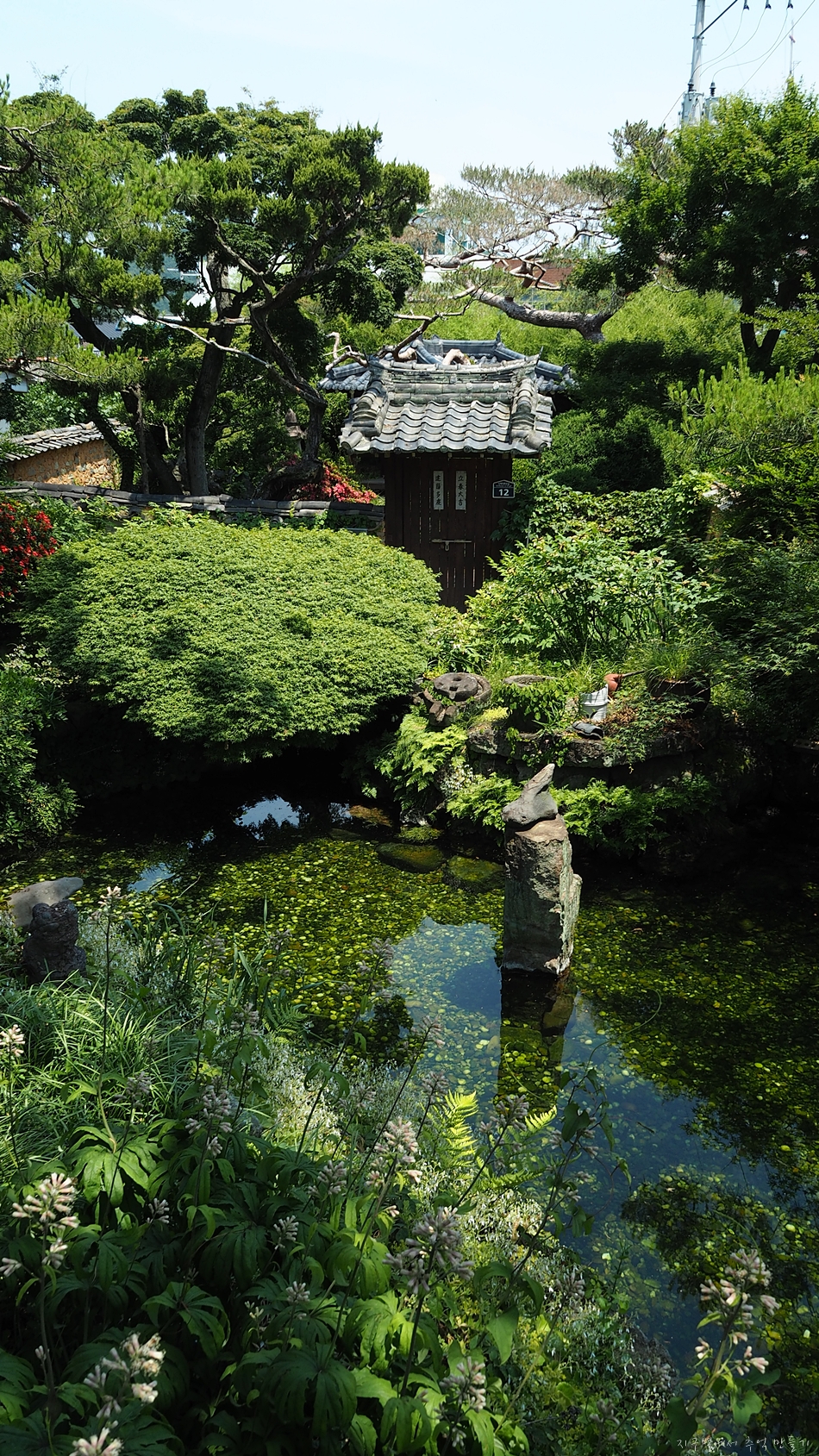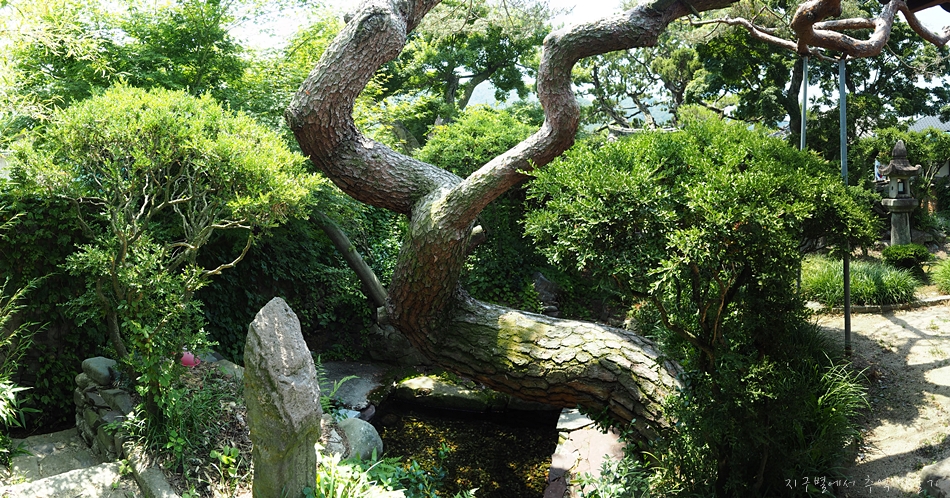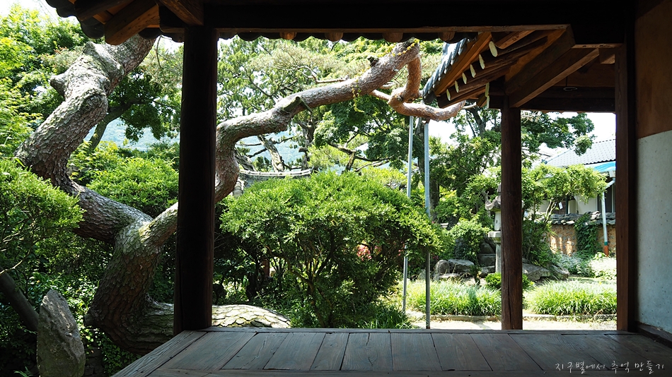 수령이 오래된 소나무와 향나무, 그리고 단풍나무가 어우러지고, 발 디딜틈도 없이 꾸며져 있는 정원..