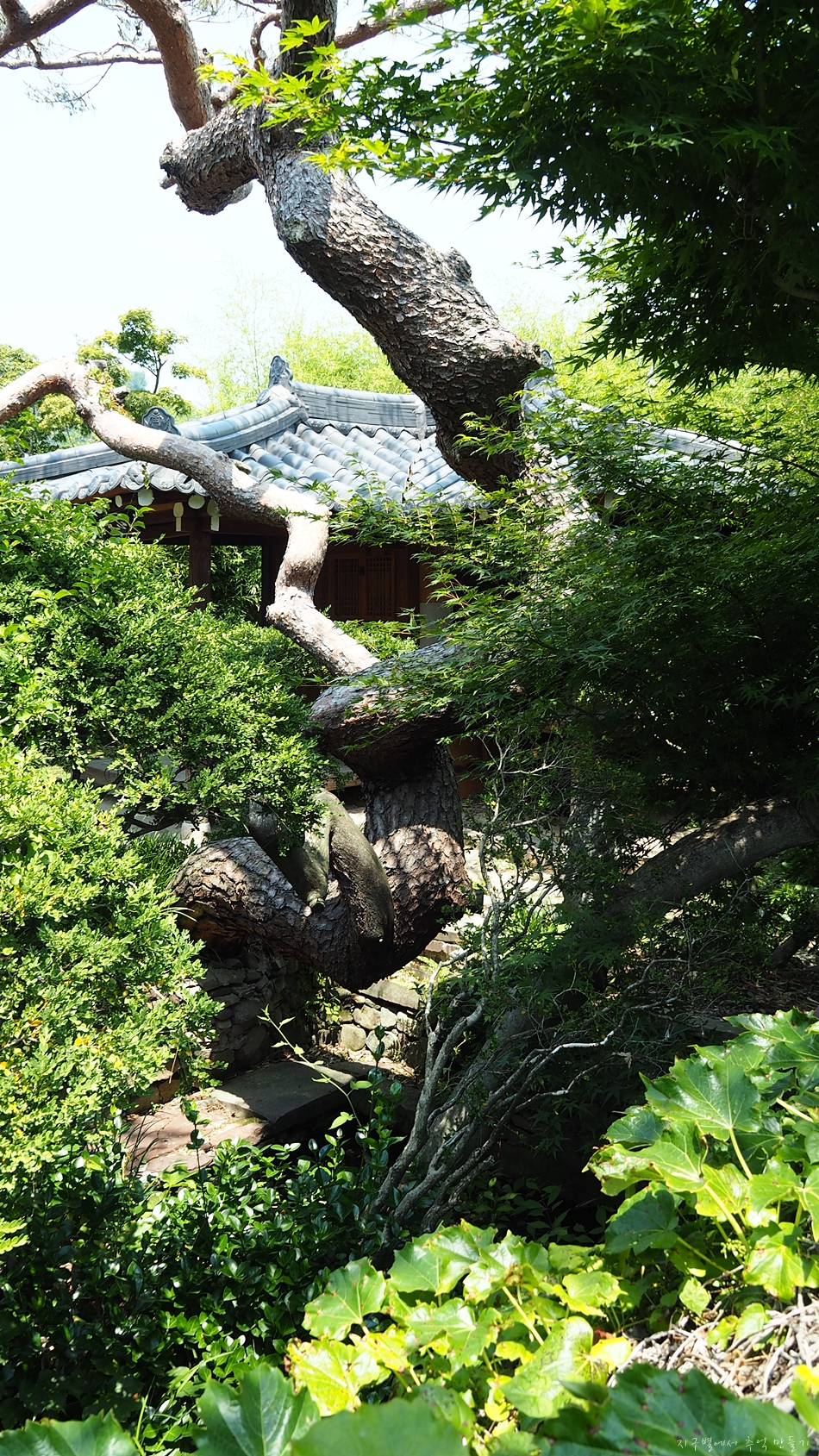 소나무와 샘터가 기가 막히게 어울립니다.