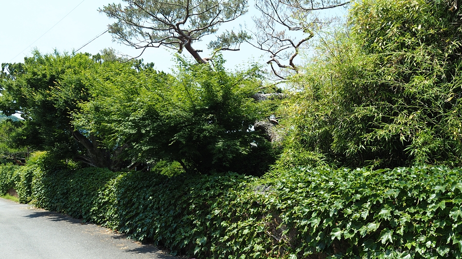 골목으로 이어지는 나머지 담들은 모두 담쟁이가 덮고 있네요.