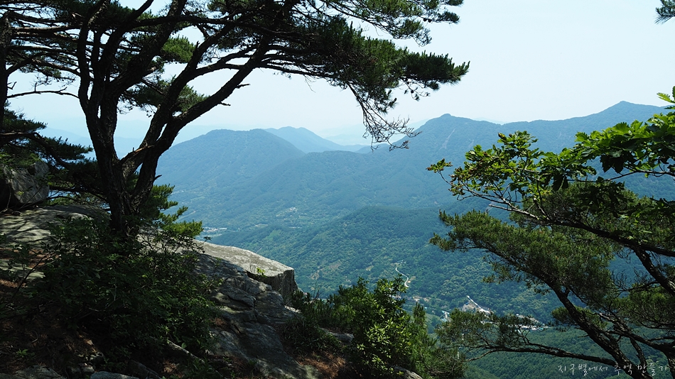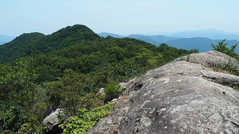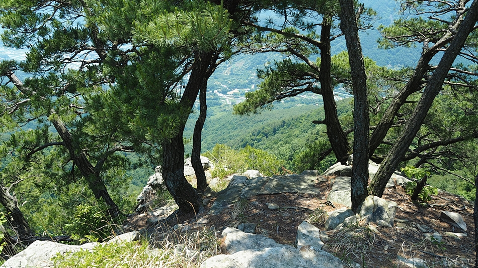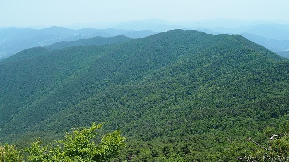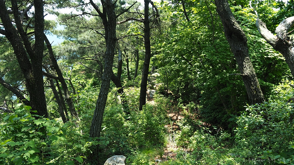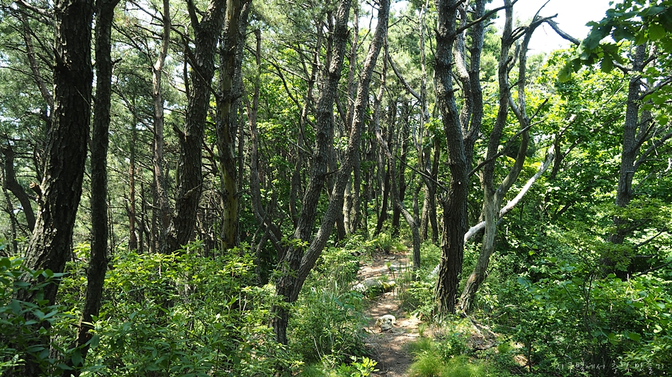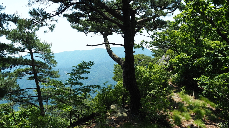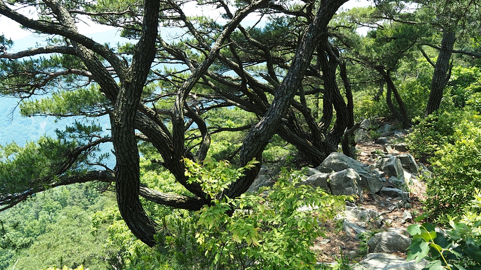 조망은 봉수대를 지나면서 트이기 시작하는데 한쪽이 절벽으로 된 능선길에서 만나는 노송과 시원한 바람은 오늘 산행의 최고 선물이었습니다. 6월 날씨인데도 무척이나 더워 갈때부터 갈아입을 옷과 수건을 챙겨갔는데 바짝 말라버린 계곡에서 알탕은 커녕 족탁도 할 수 없었답니다.