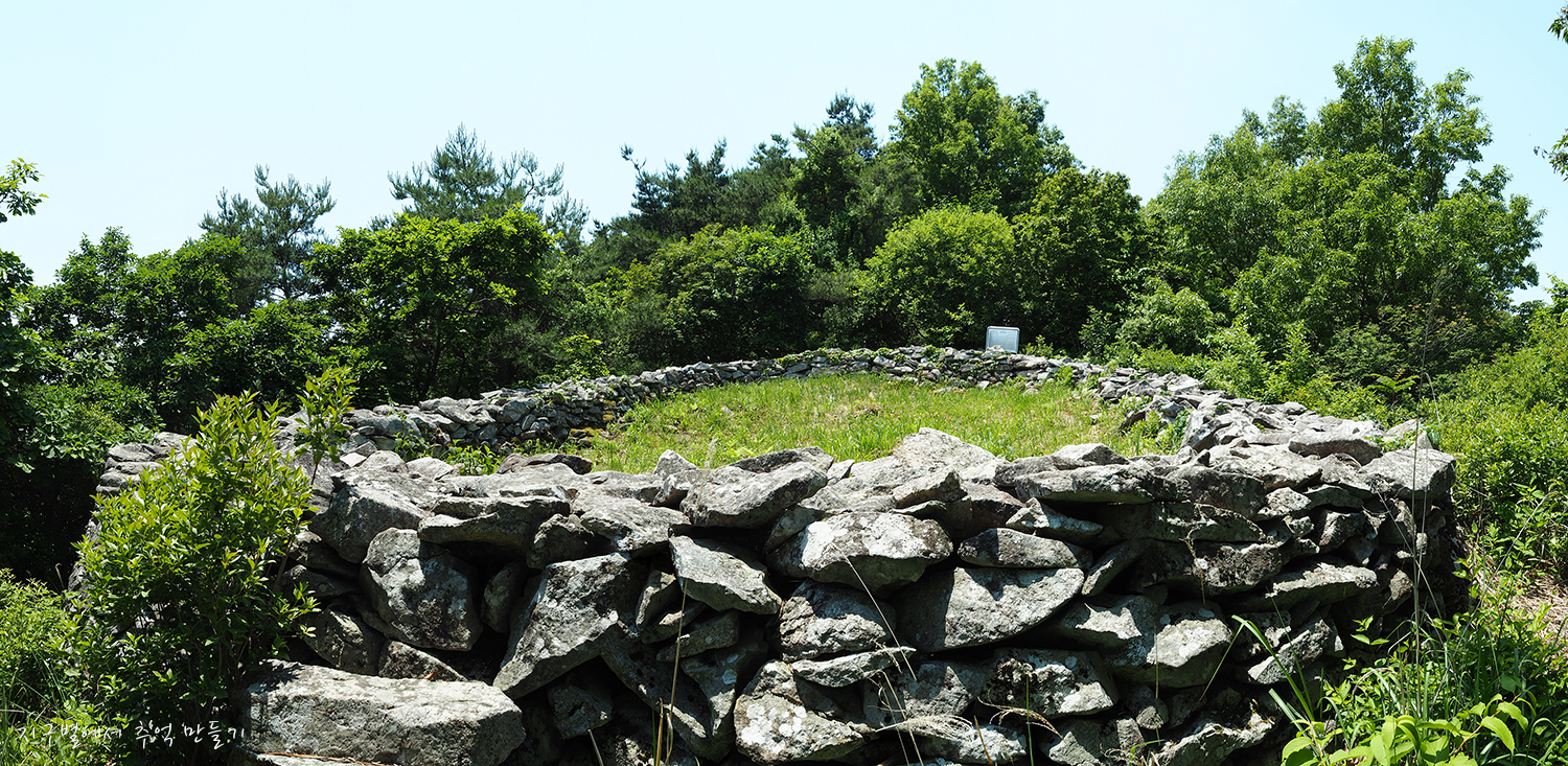이곳 봉수대 가운데에는 누군가 쓴 묘지가 있습니다.