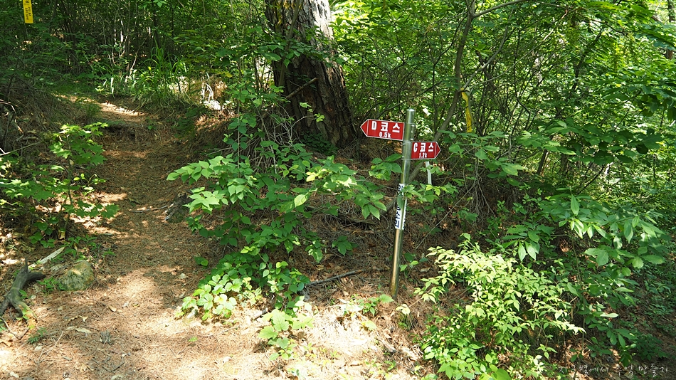 뭔 코스 이름이 적혀 있는데 D 코스 방향이 낙대폭포 구간입니다.