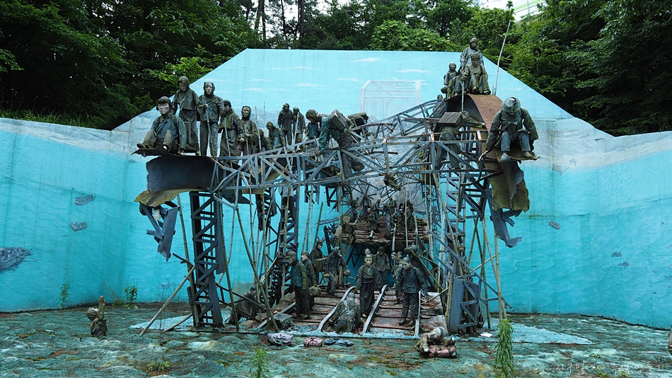 중공군 개입으로 평양에서 철수하는 유엔군을 따라 남하 하기위해 대동강 철교 건너는 백성들의 장면입니다.