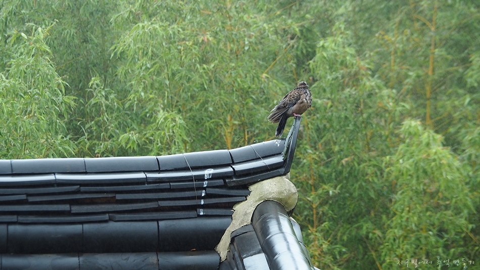 망와 끝에 비맞으며 처량하게 앉아 있는 저 새는 ...