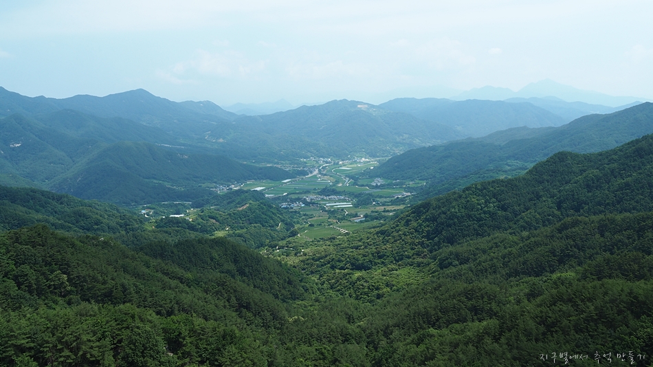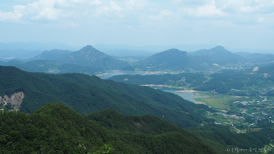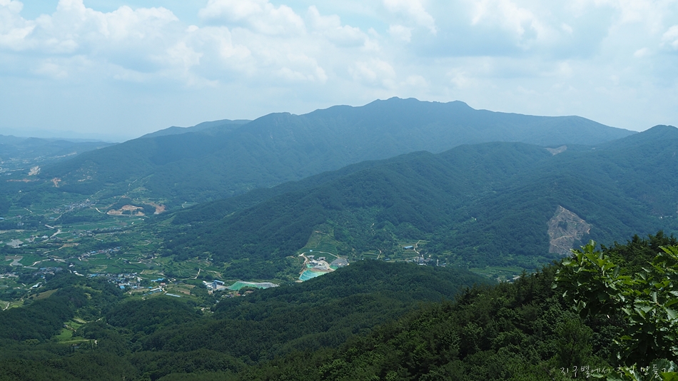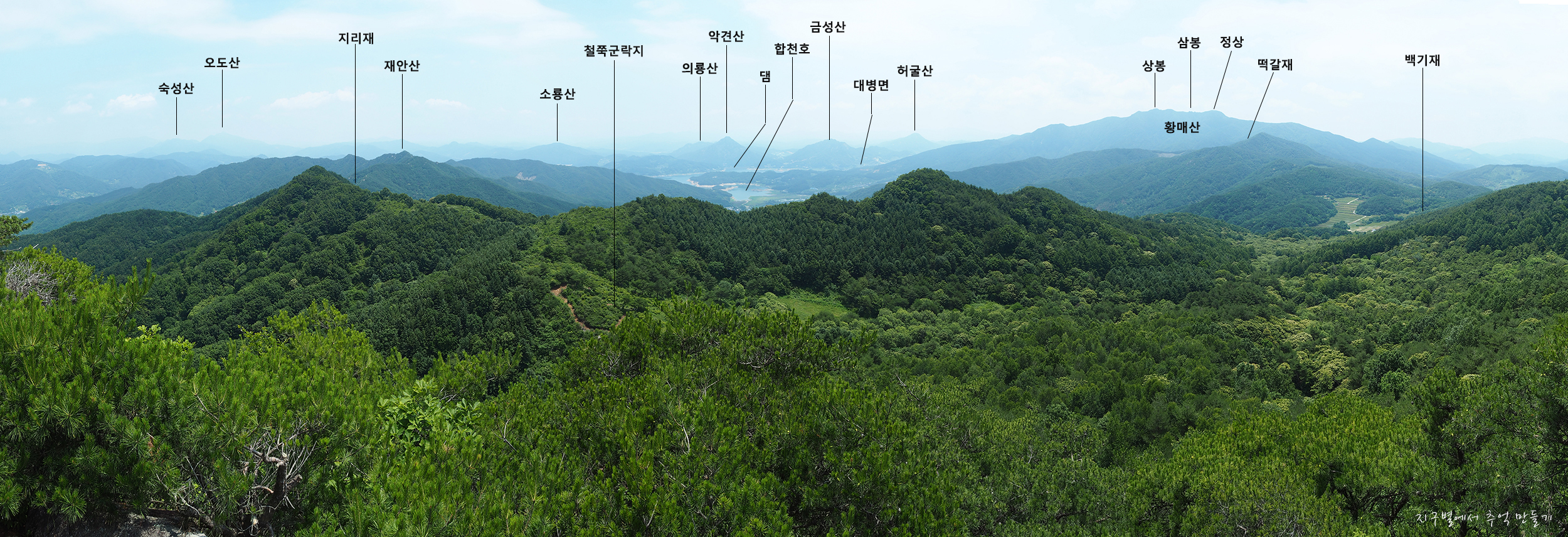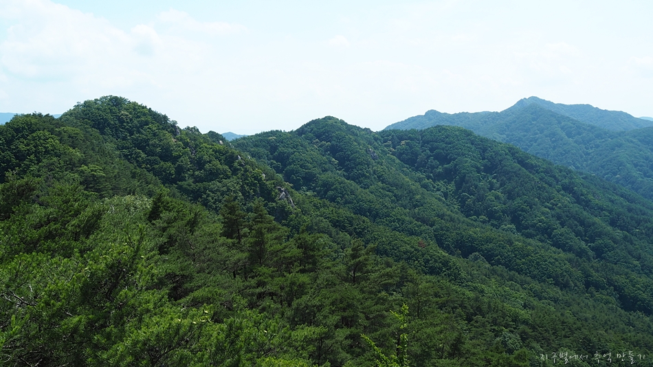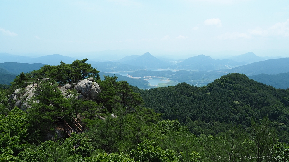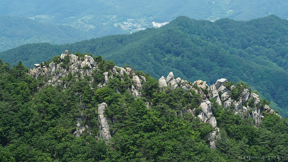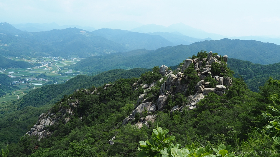 중간쯤 맨 뒤로 오도산과 숙성산이 보이는데 날씨가 맑으면 의상봉 능선과 가야산도 뚜렷하답니다.