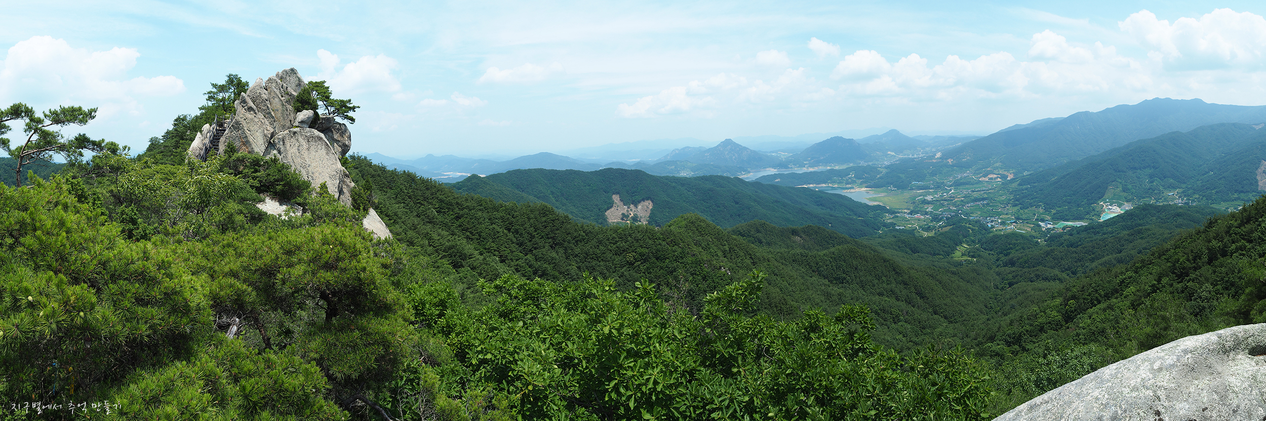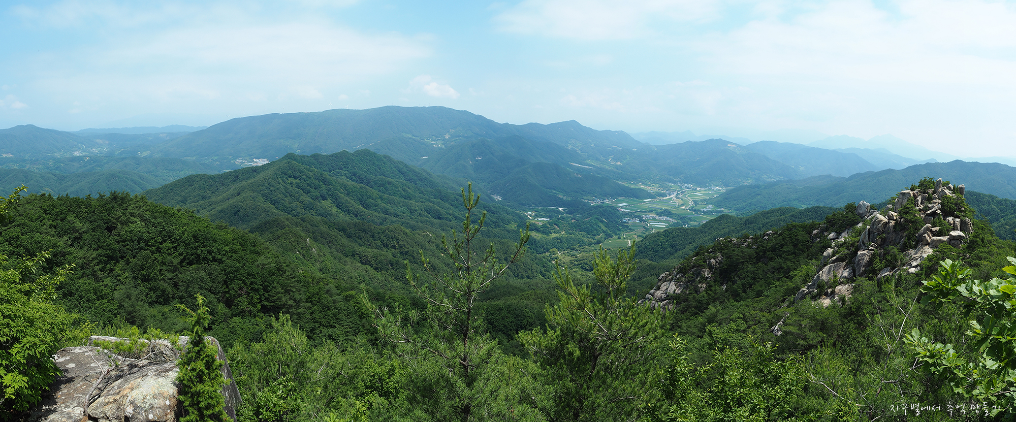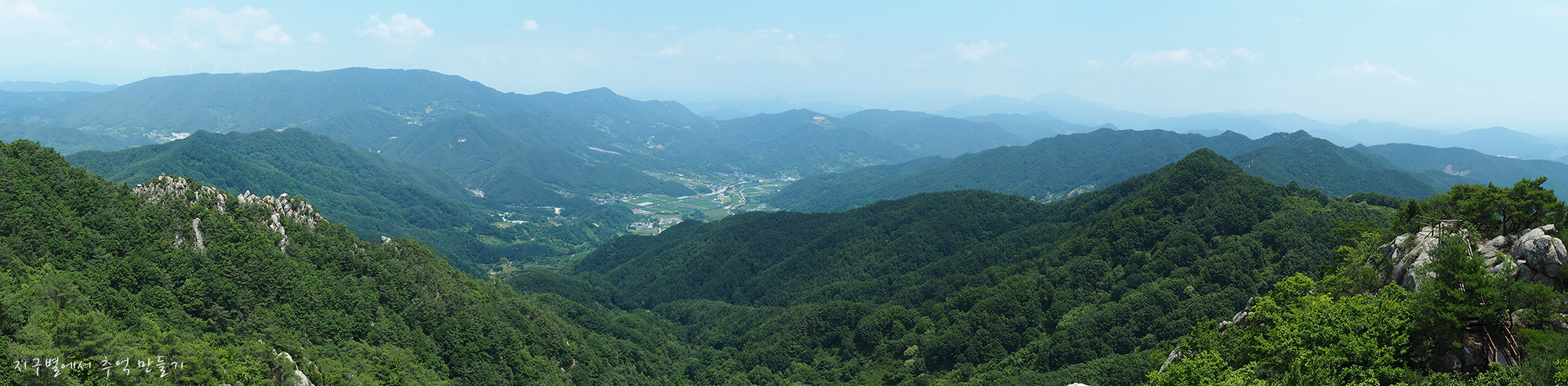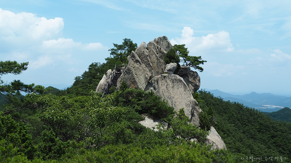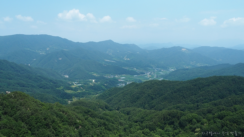 중간쯤 맨 뒤로 오도산과 숙성산이 보이는데 날씨가 맑으면 의상봉 능선과 가야산도 뚜렷하답니다.